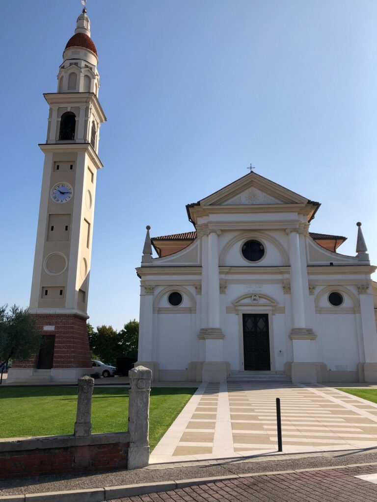 Antica dipendenza della Pieve di Godego, da questa emancipatasi nel 1480, l’edificio attuale rappresenta l’ultima opera dell’architetto Michele Fapanni, costruita a partire dal 1846 in luogo di quella precedente, divenuta angusta e pericolante.
